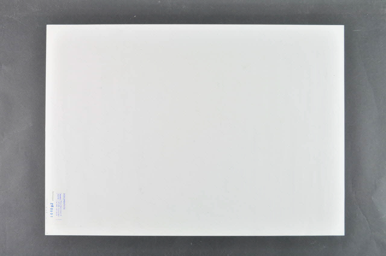 Affiche en papier glacé, rectangulaire, tenue dans le sens vertical, bordée d'un encadrement blanc.