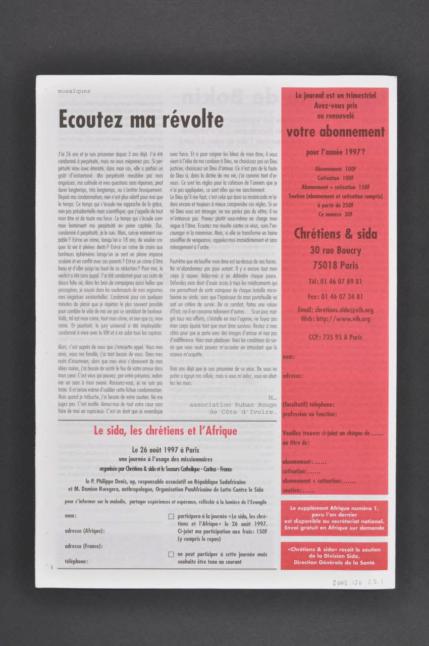 journal, Chrétiens & sida. Supplément Afrique numéro 2