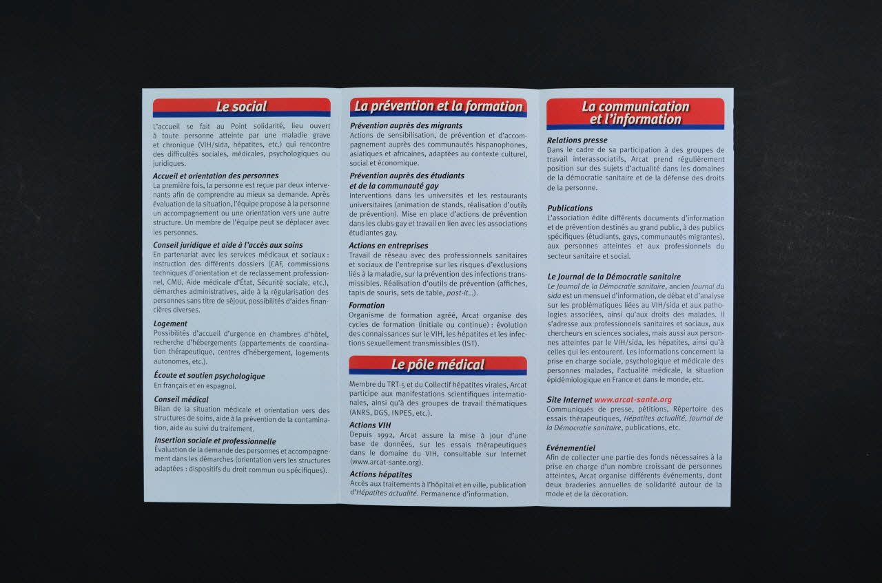 Dépliant, "ARCAT. Association de recherche, de communication et d'action pour l'accès aux traitements"