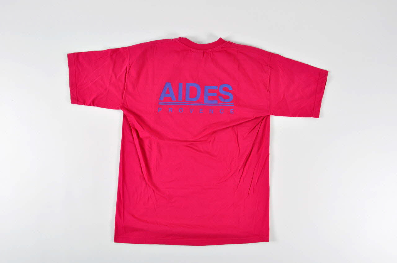 Tee-shirt rose XL de marque Switcher avec logo bleu AIDES Provence sur le coeur et en grand dans le dos.Décor