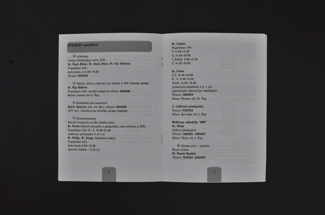 DIA LOGS // ALTBASTA CENTRS VISIEM, KURUS SKAR HIV/AIDS (En bas), sur la couvertureSommaire