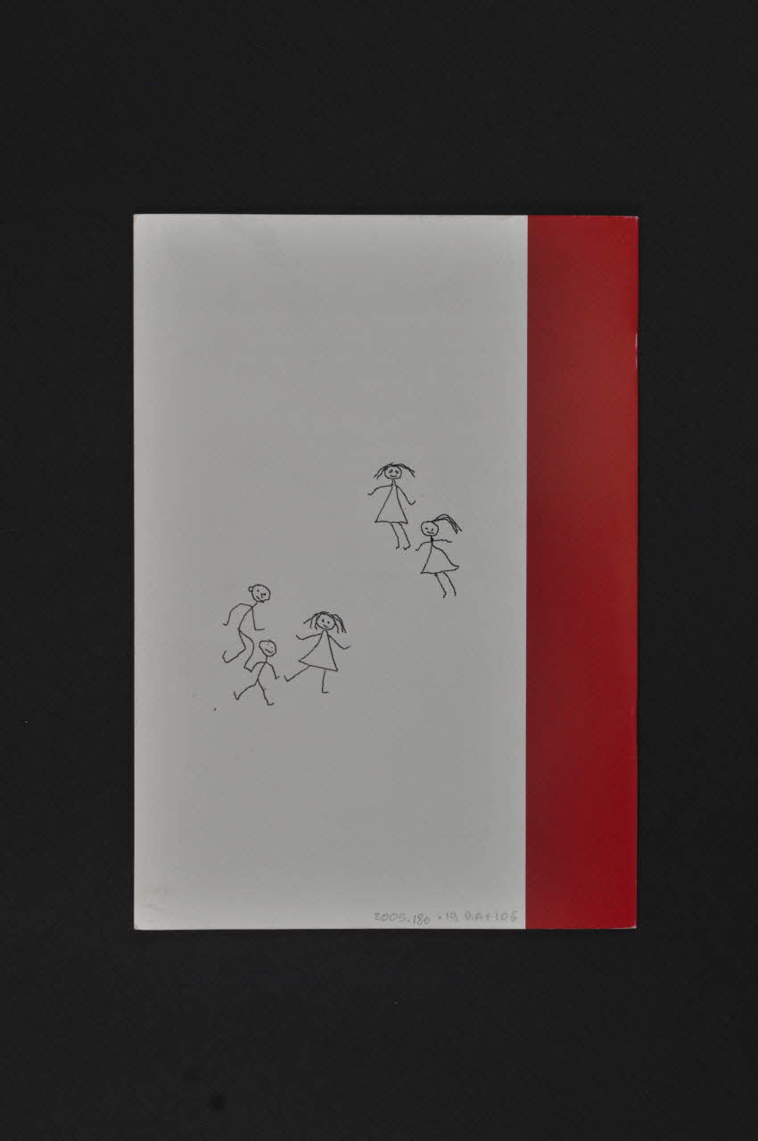 La couverture se divise en deux parties: un bandeau vertical rouge sur la gauche, un fond blanc à droite portant des inscriptions. Le fond comprend de haut en bas: une citation, des dessins enfantins représentant des silhouettes, et un un logo. Le dos est divisé de la même manière: un fond blanc à gauche, un bandeau vertical rouge à droite. Sur le fond blanc, sont disposées quelques silhouettes dessinées. L'intérieur comporte des textes listant les associations lettones et leurs informations pratiques : horaires, contacts, coordonnées...Inscriptions