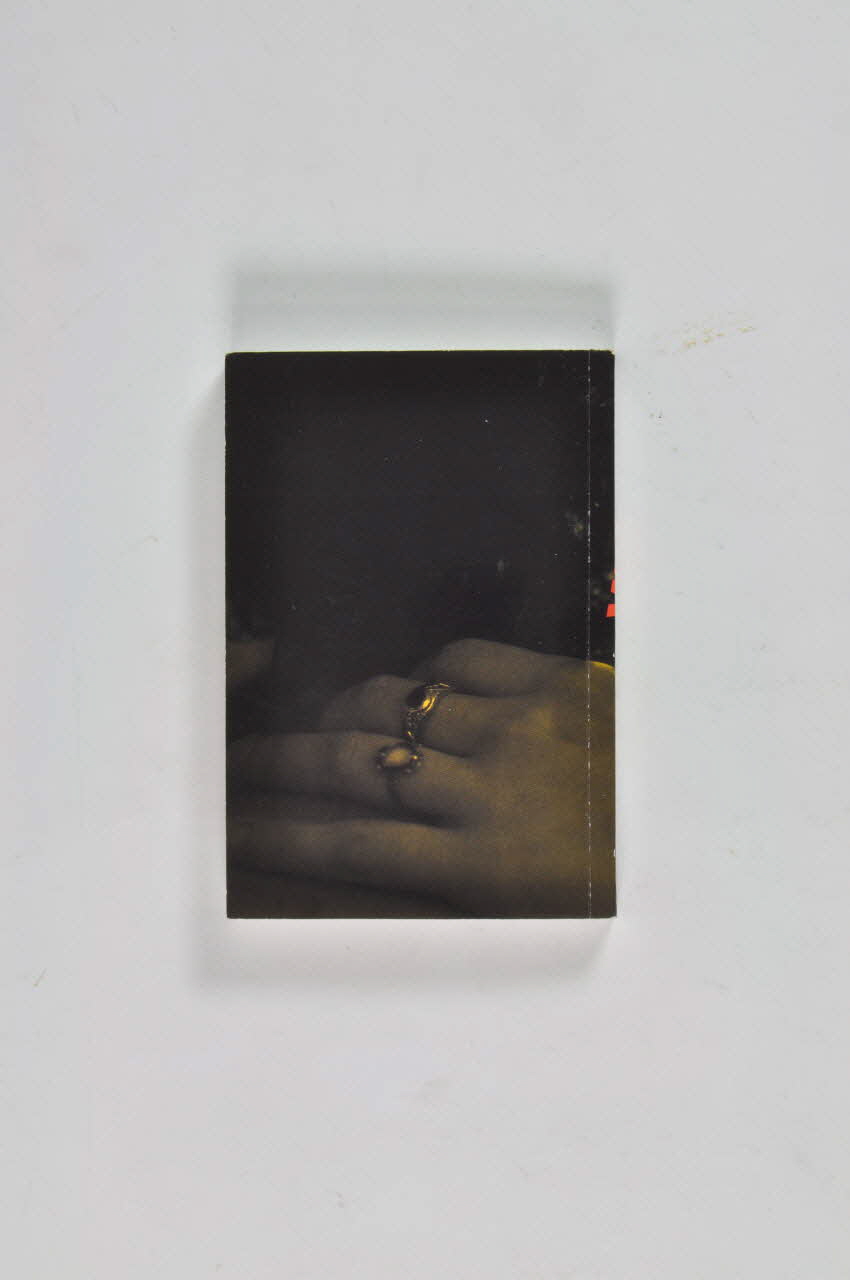 Sur le devant et le dos de la couverture, on apperçoit, sur un fond noir, en flou, éclairé par une lumière dorée, le bas du visage d'une femme et une main avec des bagues. Une inscription figure seulement sur la tranche.