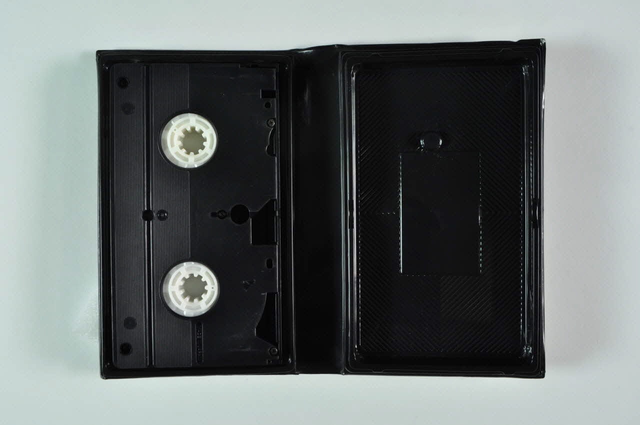Cette cassette vidéo enregistrée (.1) est conservée dans un boîtier en plastique noir (.2). Deux coupures de presse sont glissées dans la couverture externe en plastique transparent du boîtier.