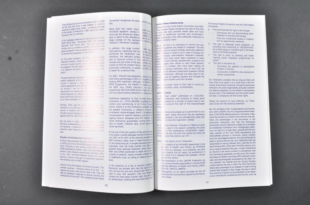 Retranscription des interventions : - Présentation du Forum - Les traitements dans les cliniques sunflower - Interventions et messages des officiels roumains (ministres, commission nationale contre le sida) - Organisations internatonales - Union nationale des personnes affectées par le sida (UNOPA). Dénoncent les insuffisances gouvernementales et quittent la salle en signe de protestation. - Témoignages de parents et de jeunes séropositifs - Représentants de laboratoires pharmaceutiques - Ateliers : atelier parents et atelier enfants - Atelier d'enfants sur la révélation du diagnostic - Interventions sur la révélation du diagnostic