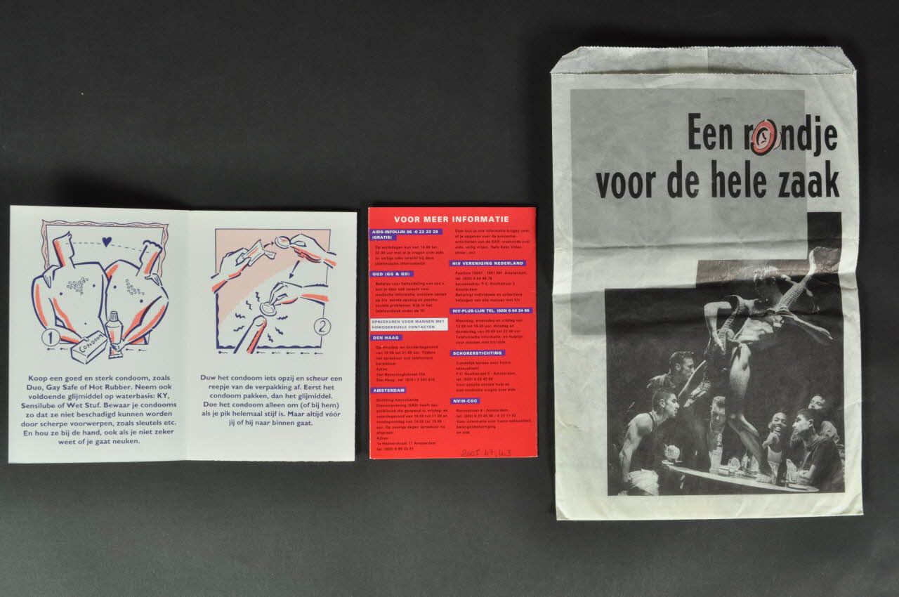 A l'intérieur, sur une face on trouve six dessins en noir et rose : nous expliquant la pose du préservatif pour des rapports homosexuels.