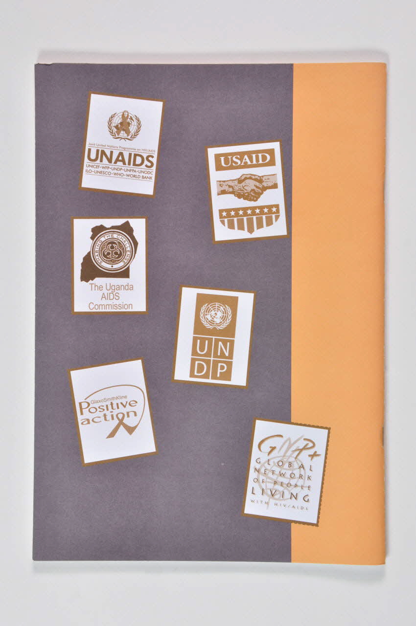 GNP+ // GLOBAL // NETWORK // OF PEOPLE // LIVING // WITH HIV/AIDS // // NGEN+ // National // Guidance // and // Empowerment // Network // of People // Living with // HIV/AIDS // in Uganda // // Joint United Nations Programme on HIV/AIDS // UNAIDS // // USAID // // SHARING THE CHALLENGE // The Uganda // AIDS // Commission // // UNDP // // GlaxoSmithKline // Positive // action (et au dos, sept logos), sur la couvertureDécor