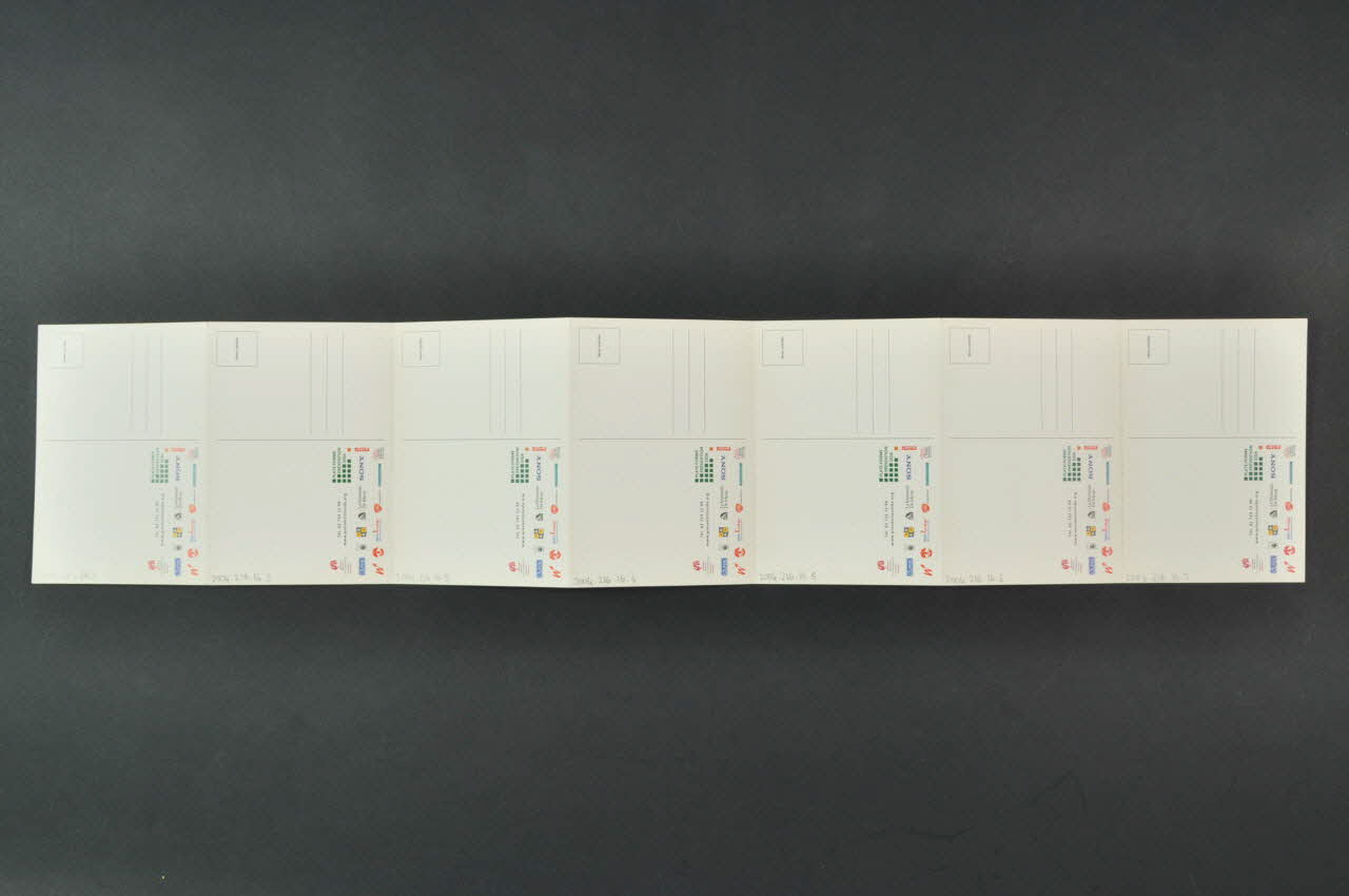 Ce sont sept cartes postales en carton, prédécoupées, de forme rectangulaire, dans le sens vertical,