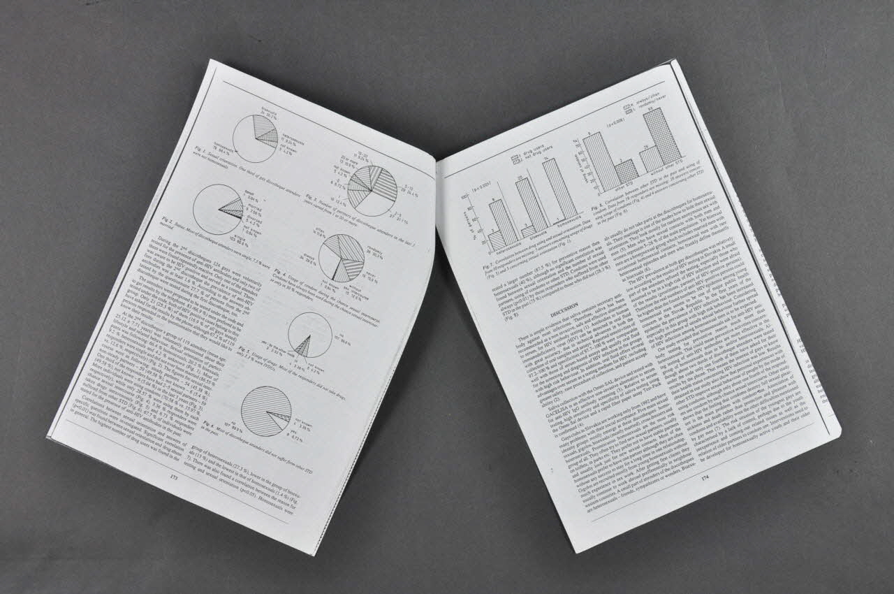 Il s'agit d'un article sur quatre pages numérotées de 172 à 175. Le titre de l'étude figure en gras en haut de la page 172. Il est suivi de la liste des auteurs, puis d'un résumé sur rectangle gris. Le texte est ensuite réparti en deux colonnes et illustré de huit graphiques. Une bibliographie clôt l'article en deuxième colonne de la page 175. En dessous : En dessous, résumé.Inscriptions