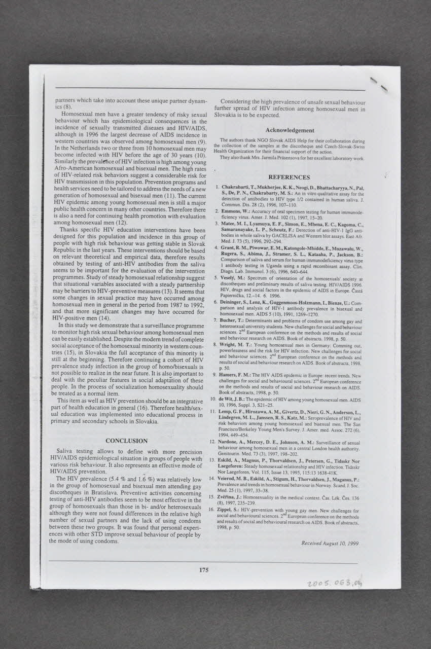 HIV Infection and sexual behaviour among homosexual and bisexual men in Bratislava (de la page 172.), en hautDate