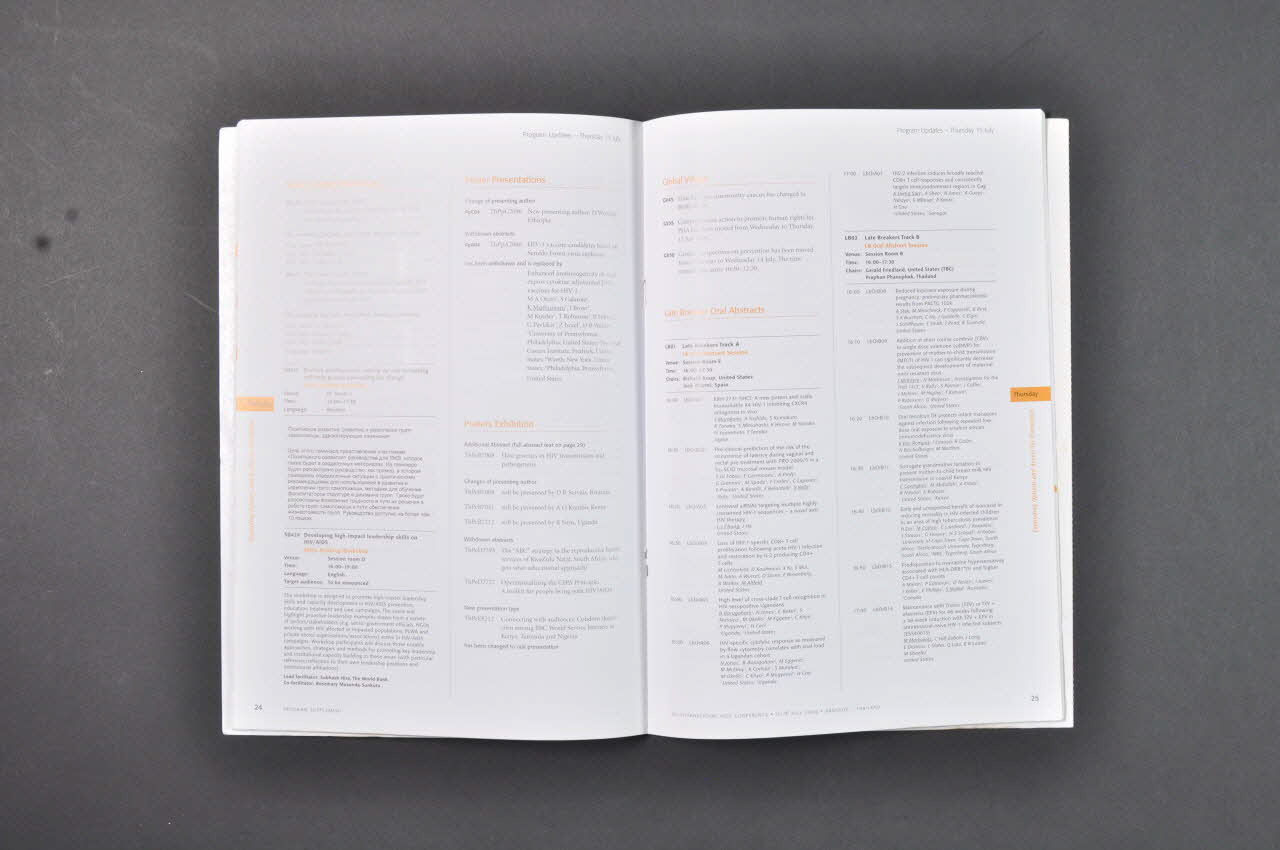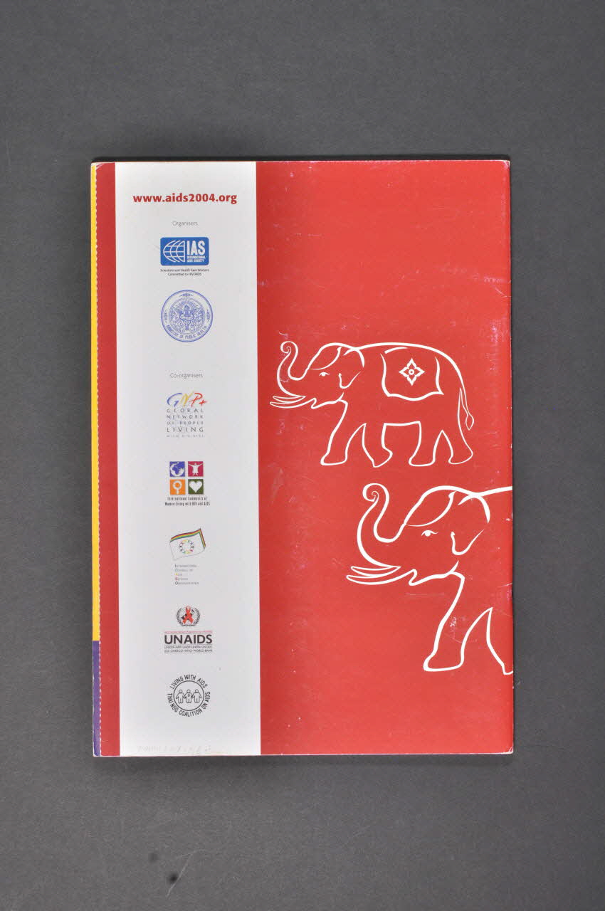 Organisers // // IAS INTERNATIONAL // AIDS SOCIETY // // MINISTRY OF PUBLIC HEALTH // // Co-organisers // // GNP // GLOBAL // NETWORK // OF PEOPLE // LIVING // with HIV / AIDS // // International Community of // Women Living with HIV and AIDS // // International // Council of // AIDS // Service // Organizations // // UNAIDS // // LIVING WITH AIDS // THAI NGO COALITION ON AIDS (sur l'arrière du dépliant, sept logos à la verticale sur bandeau blanc.), à gaucheConcernant le lieu d'utilisation, date, logo