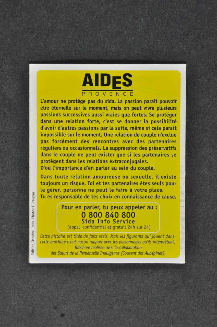 AIDES // PROVENCE (inscription en noir sur fond jaune en haut), versoNuméro
