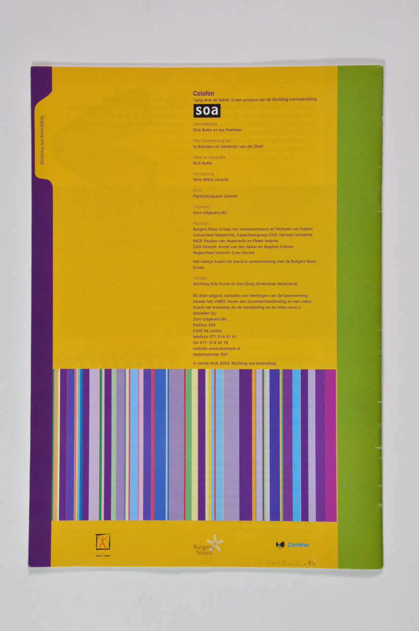 STICHTING // AIDS FONDS // // Rutgers // Nisso // // ZonMw (Dans la partie inférieure sur fond jaune), versoAuteur, date