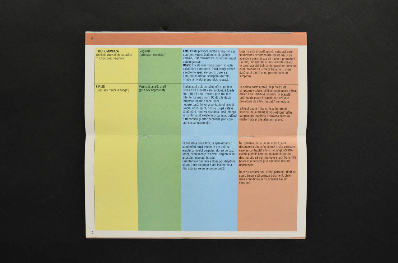 Cf tee shirt 2004.237.7 et affiche 2004.237.48 : donnés aux jeunes dans les lycées au cours d'opérations de "peer to peer education" Sommaire - Stii ce este SIDA Dar ce este HIV ? (Qu'est-ce que le Sida et le VIH ?) - Fals si adevâr despre HIV / sida (Comment se transmet et ne se transmet pas le VIH/Sida) - VIH Sida et Sexe. Sujet tabou ? - Comment peut se transmettre le VIH lors de relations sexuelles ? - Comment peux-tu te protéger dans tes relations sexuelles ? - Les préservatifs (6 schémas légendés) - Informations sur les Infections Sexuellement Transmissibles (tableau) - Alcool et drogues - En vacances : Protège-toi même en vacances - Le test de dépistage du VIH - Stigma et exclusion sociale (avec 4 témoignages de jeunes) - Informe-toi (téléphones et sites utiles) - Quizz