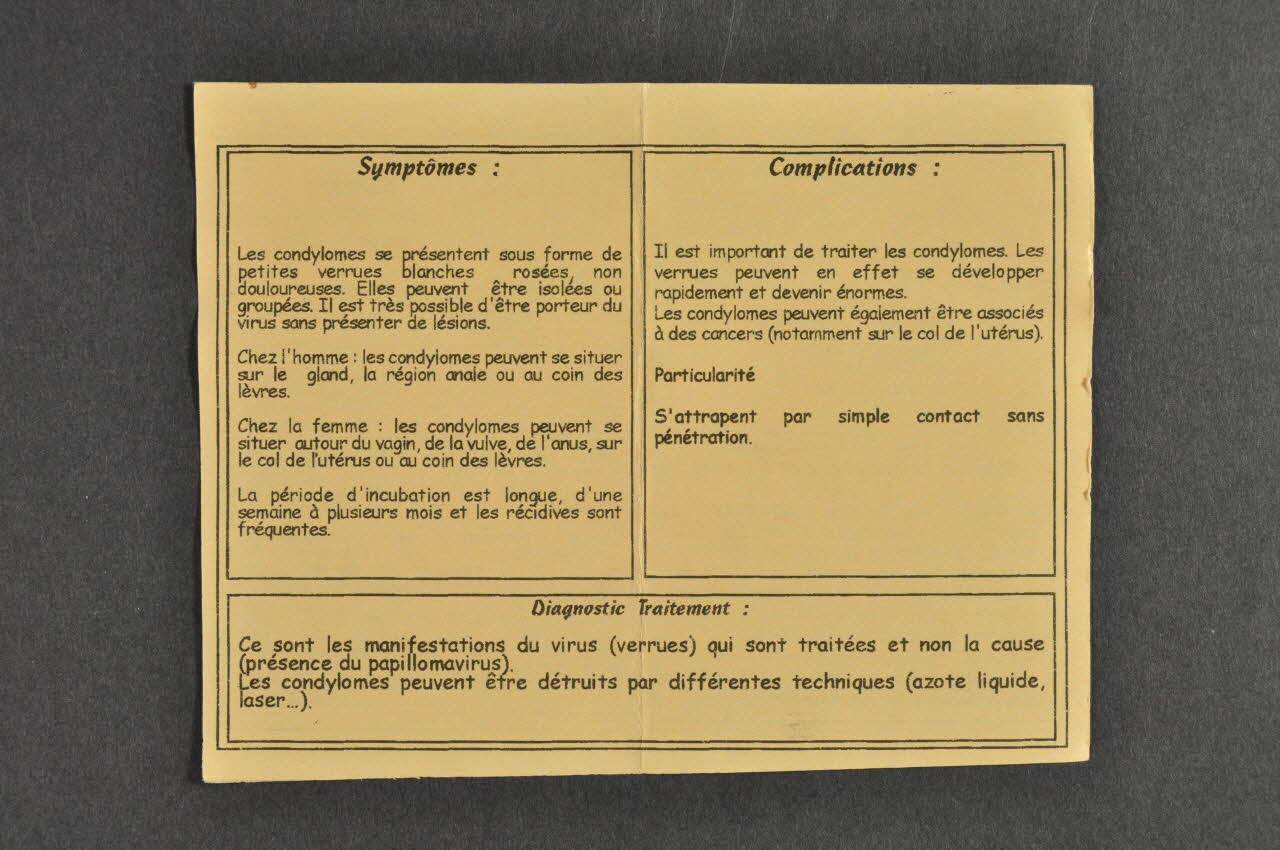 flyer, Maladies sexuellement transmissibles : Les condylomes (crêtes de coq)