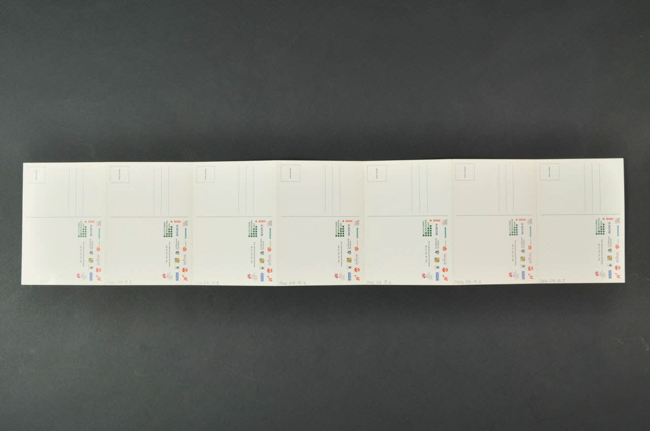 Ce sont sept cartes postales en carton, prédécoupées, de forme rectangulaire, dans le sens vertical,