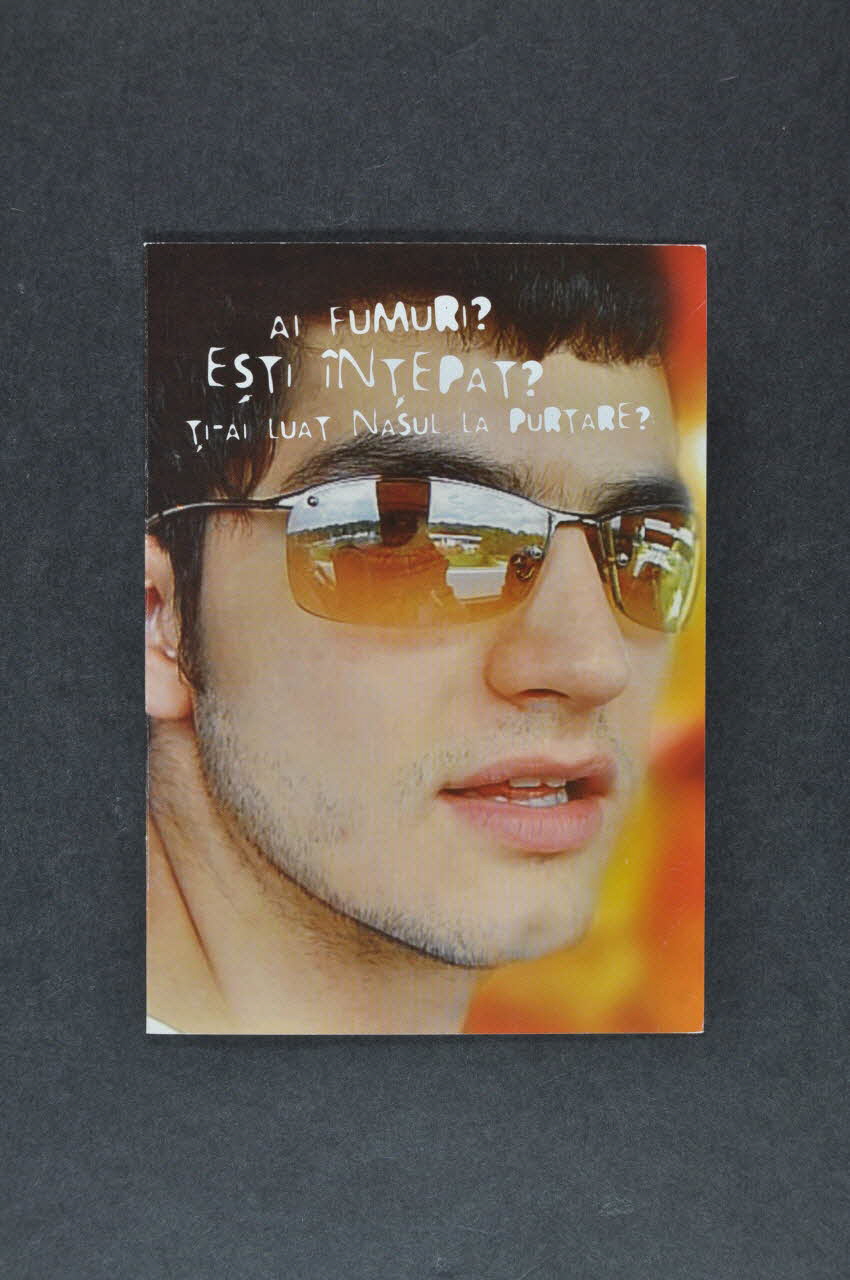 Ai fumuri ? // Esti intepat ? // Ti ai luat Nasul la purtare ? (Le titre est marqué en caractères blancs dans la partie supérieure.), rectoTexte