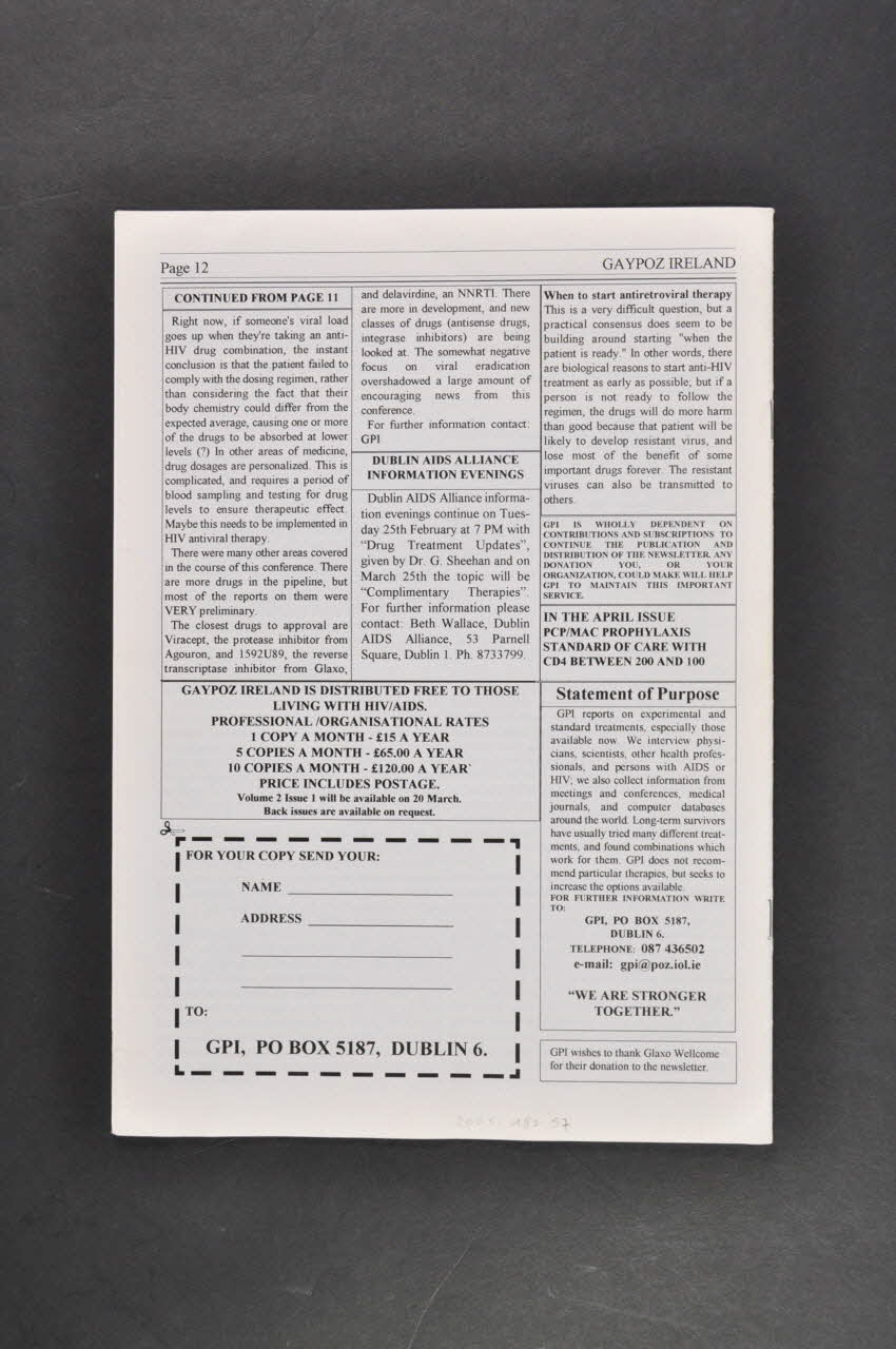 4th Conference of Retroviruses and Opportunistic Infections // // TREATMENT DECISIONS // // PROTEASE INHIBITORS - UPDATE // // ANTIRETROVIRAL ARSENAL // // READING BLOOD COUNTS // // HIV ADULT STANDARD OF CARE // // QUESTIONS TO ASK ABOUT TREATMENT // // HIV RELATED FATIGUE // // LOW VITAMIN B12 ASSOCIATED WITH DEISEASE PROGRESSION // // MEDIA ROUND // // SUPPORT FOR 1952 // // GPI ISSUE 9 EXCEEDS 450 COPIES (contenu de la revue, pas nécessairement dans l'ordre de la présentation du numéro), sur la couvertureDécor
