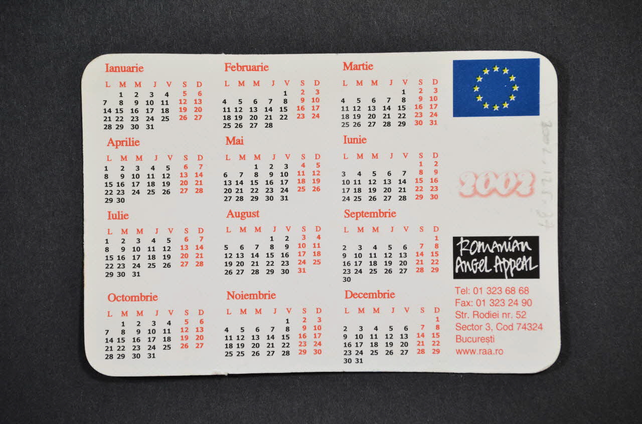 Str. Rodiei nr. 52 // Sector 3, Cod 74324 // Bucuresti // www.raa.ro (En rouge sur l'angle droit.), versoLogo