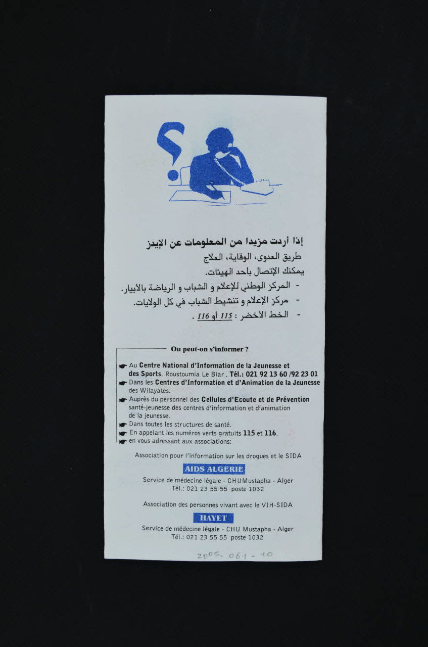Dépliant, "Pour une vie sans sida" (en français et en arabe)