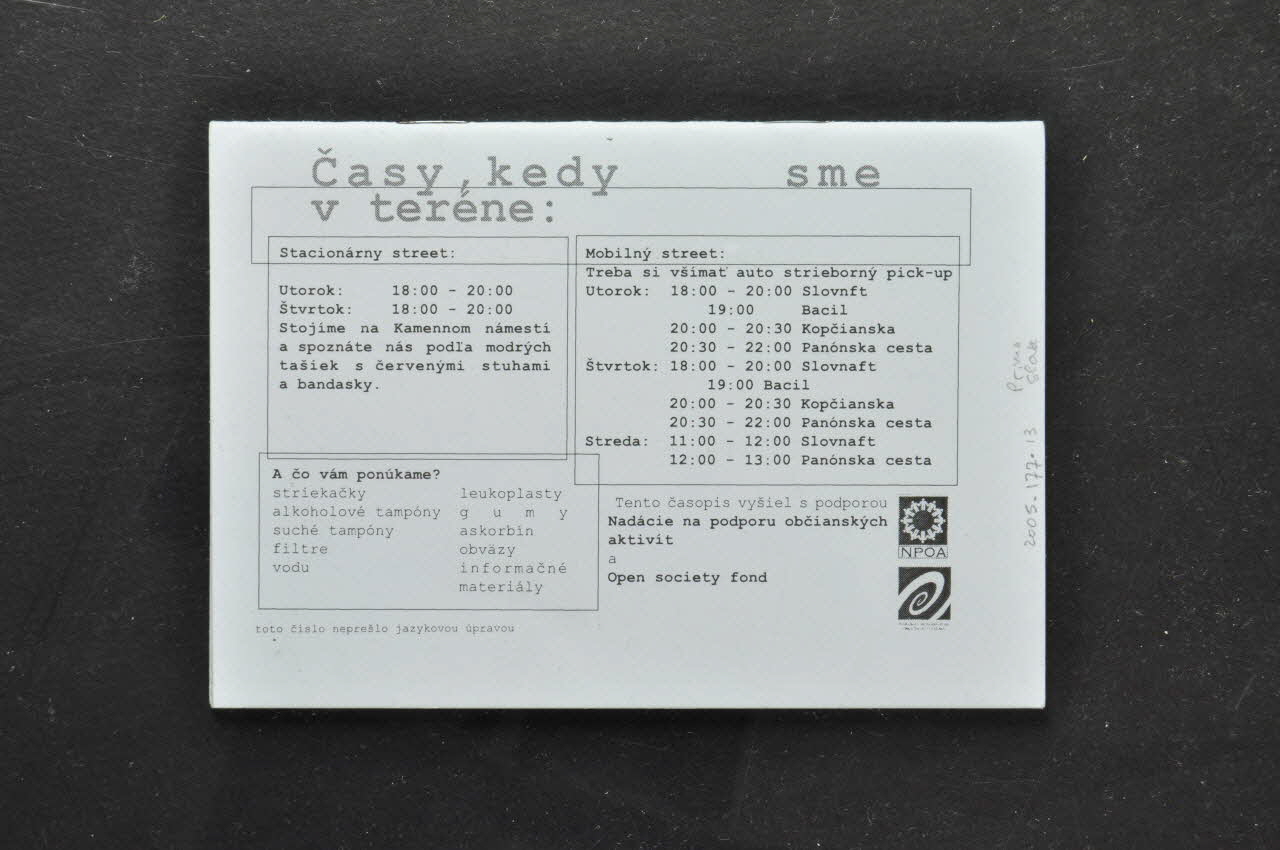 Tento Casopis vysiel a podpourou // Open Society fond (imprimé en noir sur blanc sur la 4e de couverture.)Décor