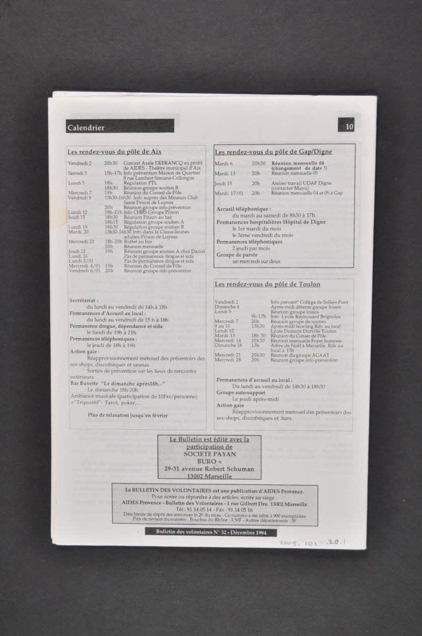 Bulletin associatif, Bulletin des volontaires, n° 32, décembre 1994 / Sida
