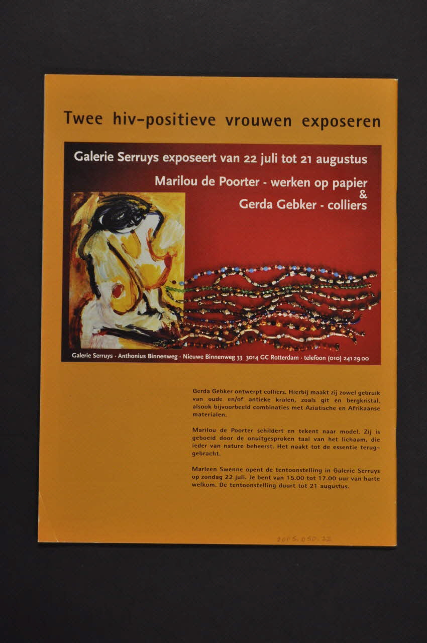 Hivnieuws (Titre de la revue inscrit en noir dans le haut de la page), sur la couvertureTwee hiv-positieve vrouwen exposeren (Titre au dos de la revue, dans le haut de la page), en hautSommaire