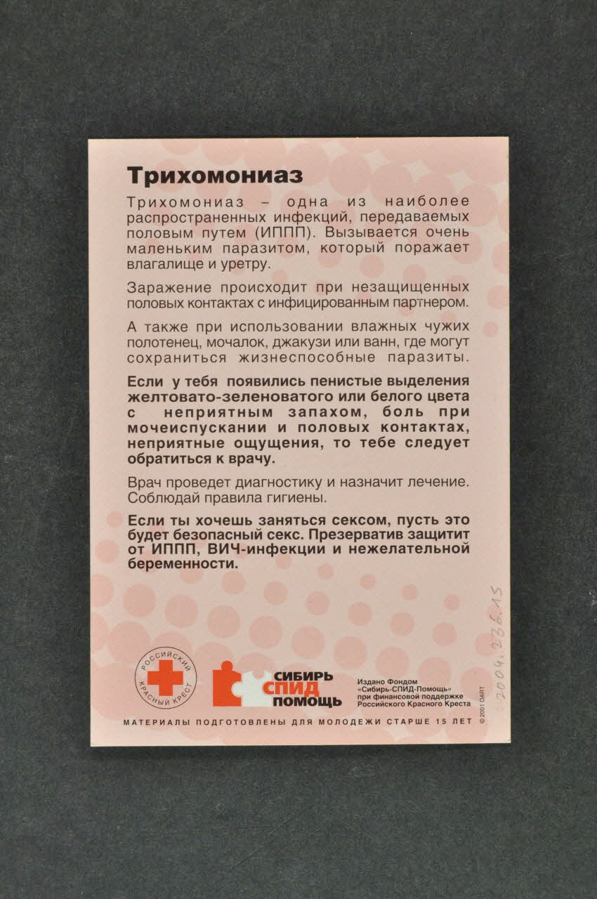 Fait partie d'une série de 7 cartes mettant en scène des animaux pour une forme de "Quiz" sur la sexualité, les MST, le sida et l'exclusion.