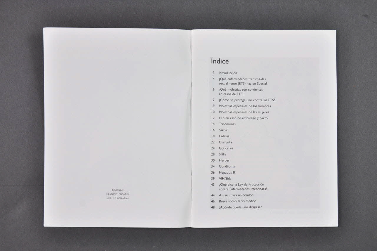 Un librito sobre enfermedades transmitidas sexualmente. (sur la couverture)SPANSKA (au dos au centre)Sommaire