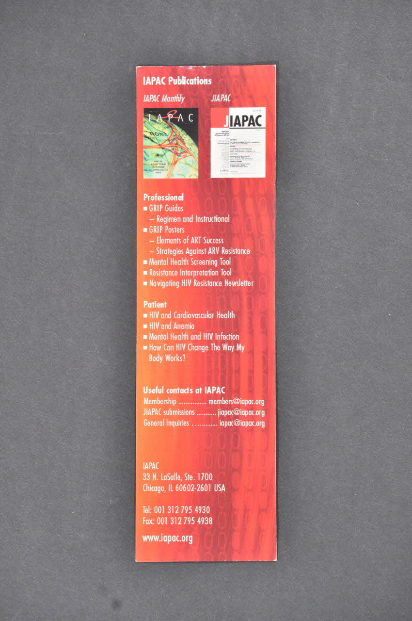 IAPAC // 33 N.LaSalle, Ste .1700 // Chicago, IL 60602-2601 USA (en blanc dans la partie inférieure), versoNom d'association, logo