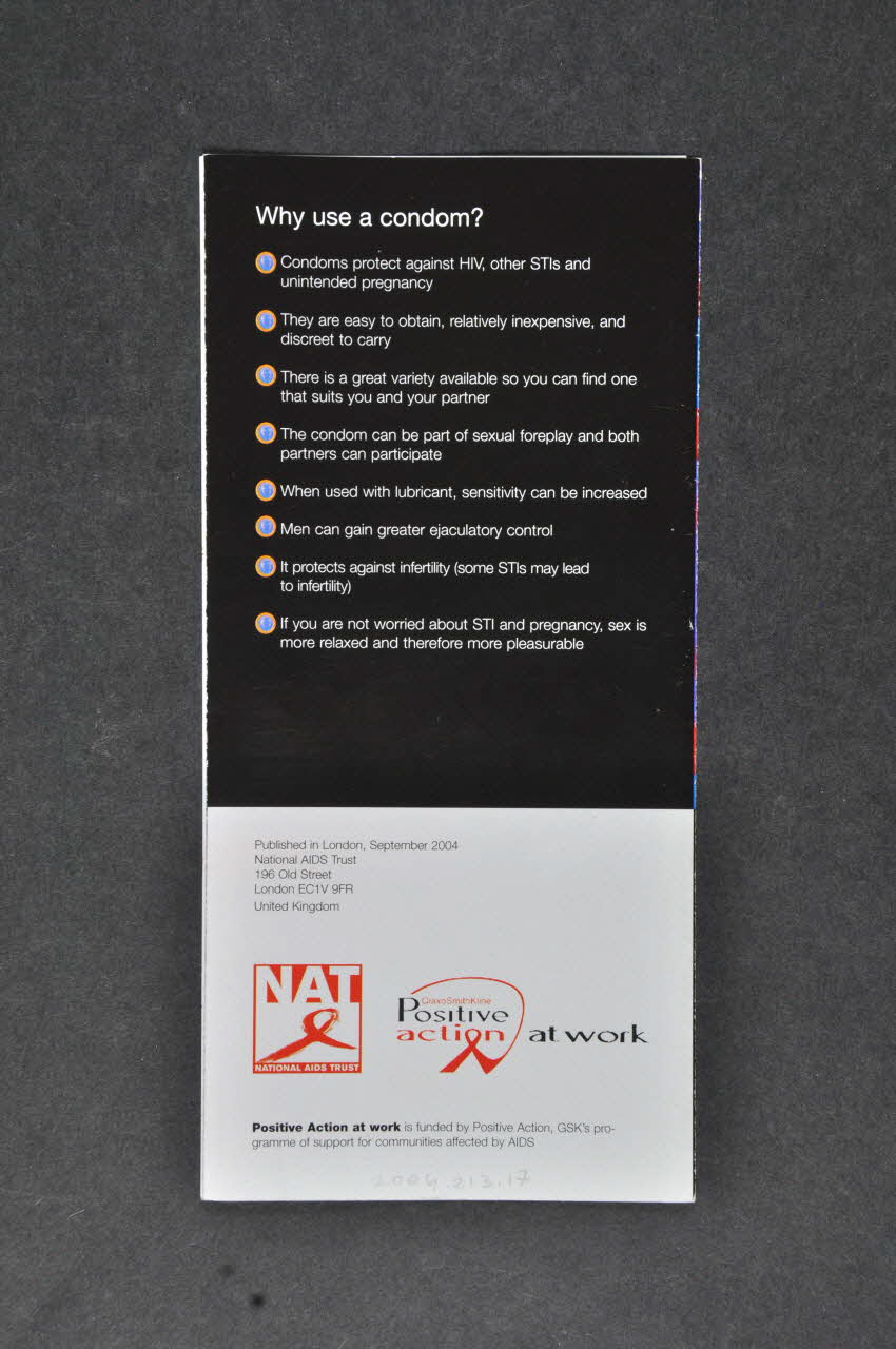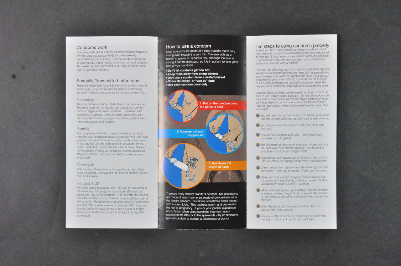 - Condoms work // - Sexually Transmitted Infections // - How to use a condom // - Ten steps to using condoms properly // - Whose responsibility is it ? // - Why use a condom ? (au fil du texte), à l'intérieurLogo