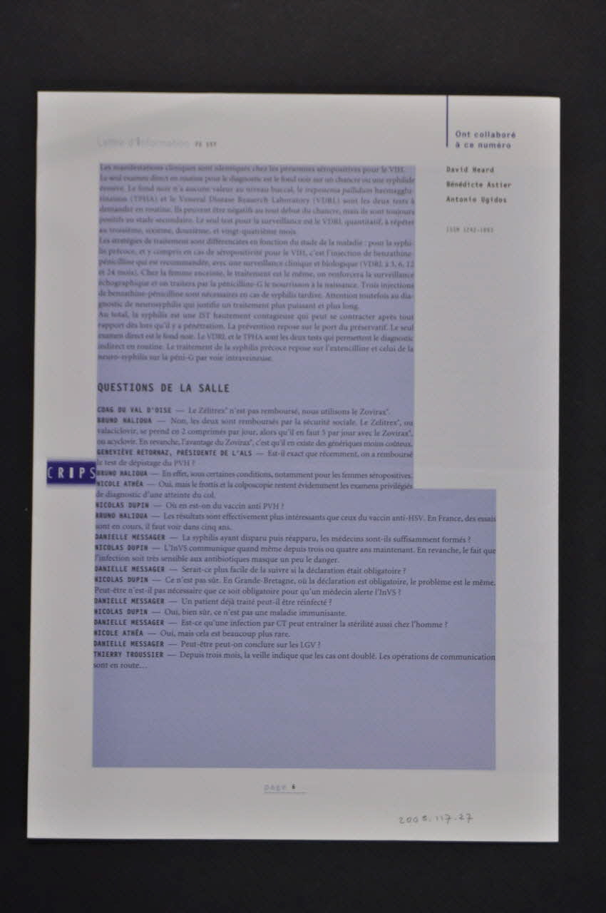 Centre // Régional // d'Information // et de Prévention // du Sida (Nom d'association inscrit en noir sur la droite de la première page), à droiteTexte