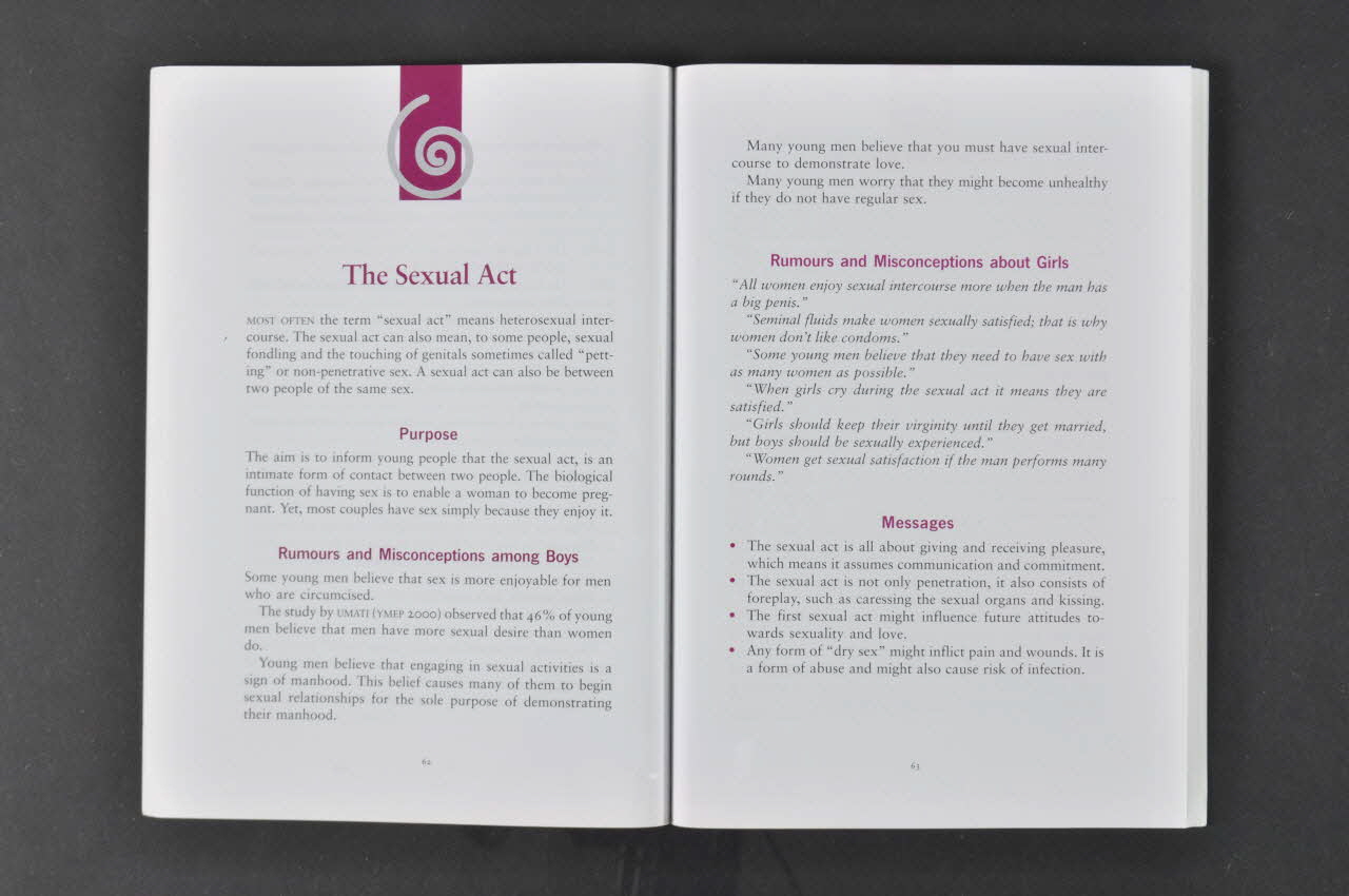 Livre sur la sexualité des jeunes hommes et leur responsabilisation à l'égard des grossesses non désirées et des Infections sexuellement transmissibles dont le VIH. Livre destiné aux formateurs impliqués dans l'éducation sexuelle des adolescents et des jeunes hommes.
