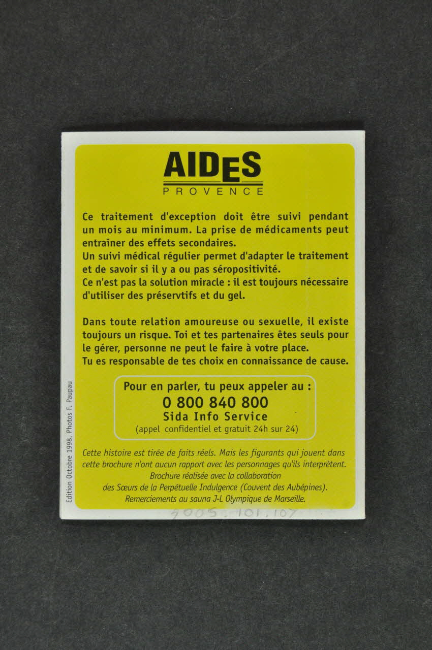 AIDES // PROVENCE (en haut, en noir sur fond jaune), versoNuméro