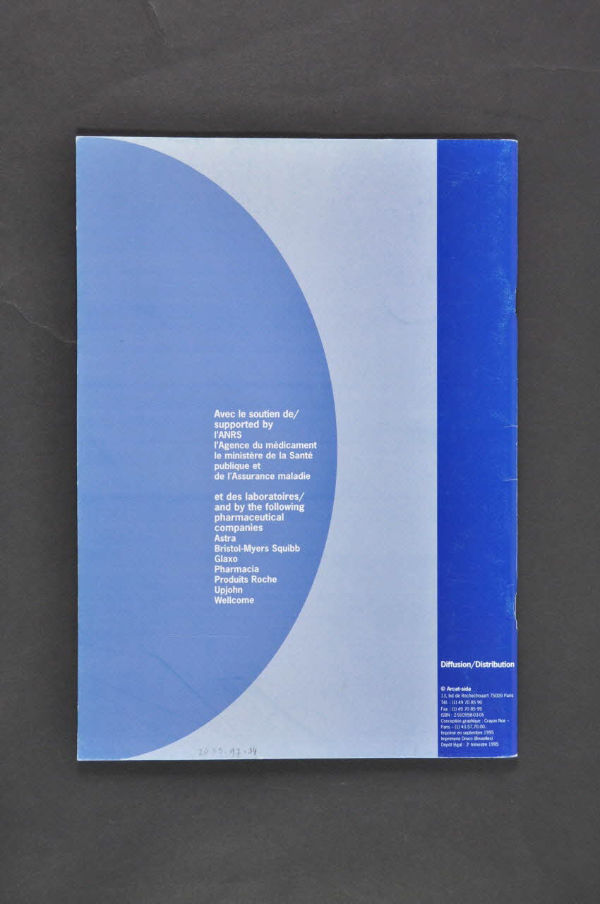 ARCAT // SIDA // Association de recherche de communication et d'action pour le traitement du sida // // // anRs // Agence Nationale de Recherches sur le Sida // // AGENCE // DU // MEDICAMENT // // MINISTERE // DE LA SANTE PUBLIQUE // ET DE L'ASSURANCE MALADIE (Imprimé en blanc dans la bande bleue, à gauche), sur la couvertureDate