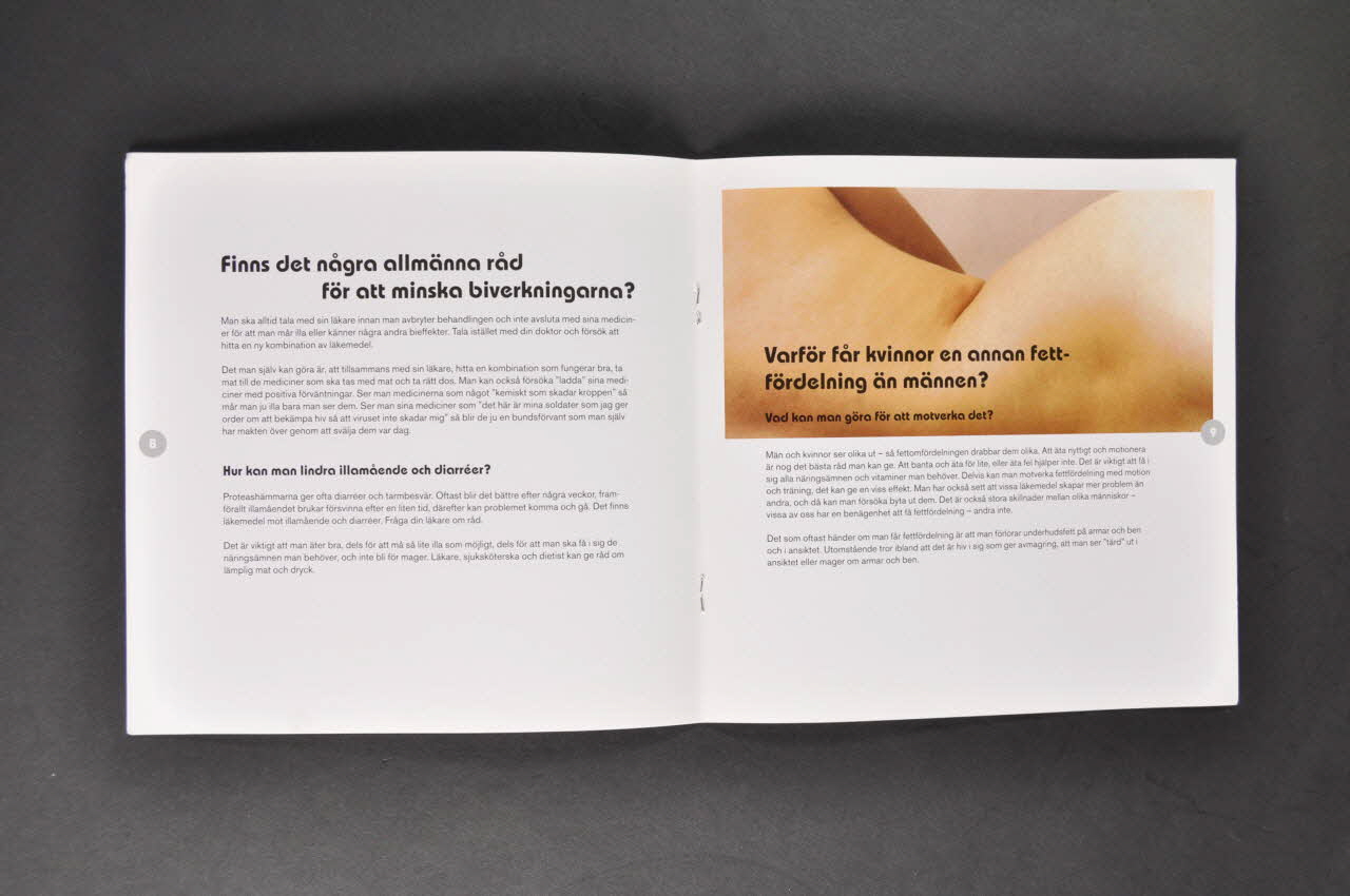 Forskas det mucket pä kvinnor och hiv idag ? // // Varför mäste kvinnor med hiv behandlas med flera olika läkemedel ? : // Ger olika kombinationer olika biverkningar ? // Behandlas kvinnor med samma doser som män ? // Varför reagerar kvinnor med hiv sä olika pä en och samma läkemedelsbehandling ? // Ibland kan det hända att vi inte behandlas alls. Varför ? // Finns det nägra allmänna räd för att minska biverkningarna ? // Hur kan man lindra illamäende och diarréer ? // Varför fär kvinnor en annan fettfördelning än männen ? : Vad kan man göra för att motverka det ? // // HIV och graviditet : // Vad beror pä att mensen päverkas ? // Fär man bli gravid när man är hivpositiv ?Vad säger Smittskyddslagen ? // Kan ett par där ena partnern är hivpositiv skaffa barn utan risk för smitta ? / Hur päverkar en graviditet hivinfektionen ? Kan graviditeten bli mer komplicerad än normalt ? // // Hur viktigt är det att ta medicinerna under graviditeten ? : Kan man använda p-piller när man tar hivmediciner ? // Fär mamman vanliga hivmediciner under gravifiteten ? // Hur päverkar medicinerna barnet ? // // Kan smittan överföras till barnet ? // Vad händer om barnet är hivsmittat ? // Ska man barätta för sina barn att man är hivpositiv ? // Kan barnen fä stöd och information nägonstans ? (Le sommaire est marqué en caractères gras et noirs.), à l'intérieurDécor