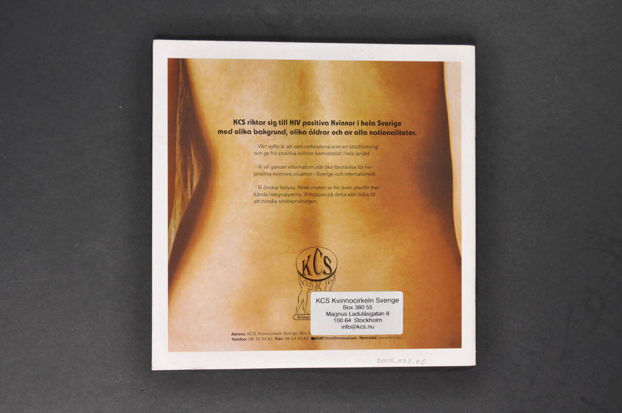 KCS Kvinnorcirkeln Sverige // Box 380 55 // Magnus Ladulasgatan 8 // 100 64 Stockolm // info@kcs.nu (L'adresse, en caractères noirs, est imprimé sur une étiquette blanche collée dans la partie inférieure de la quatrième dee couverture.), sur la couvertureSommaire