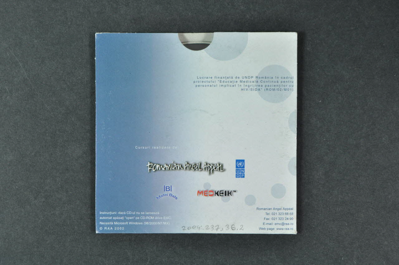 CD (compact disque), "Educatie Medicala Continua : Prevenirea transmiterii HIV in pratica medicala / Consilierea si testarea pentru infectia HIV / Comunicarea diagnosticului de infectie HIV/Sida" (Prévenir la transmission du VIH dans la pratique médicale / Conseil pour les tests de dépistage du VIH)