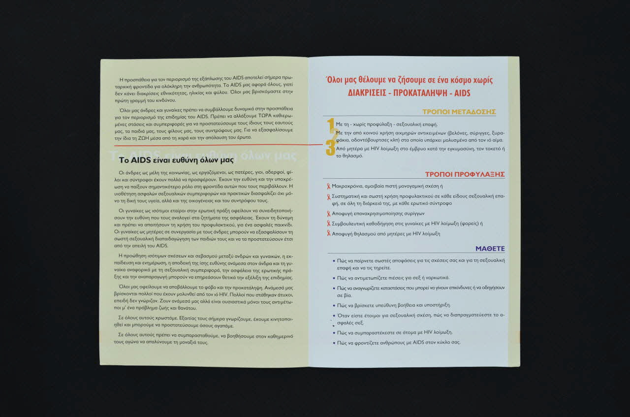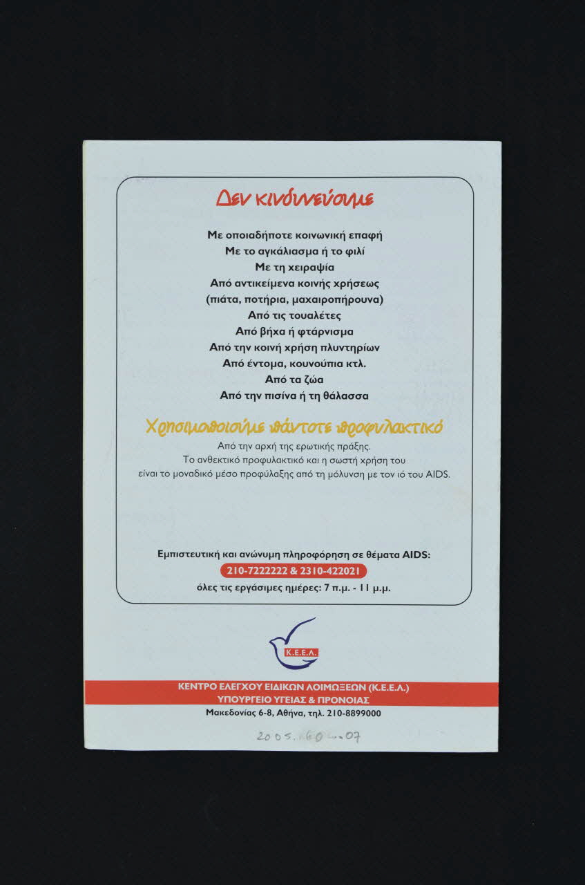 Ce dépliant rectangulaire format portrait est constitué de deux volets. Il est rédigé en grec.