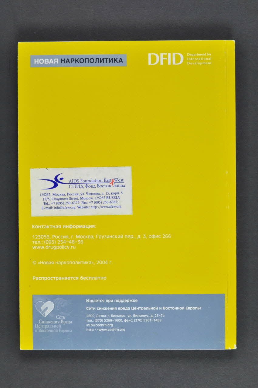 AIDS Foundation East & West (En bleu sur l'étiquette blanche collée), versoLogo
