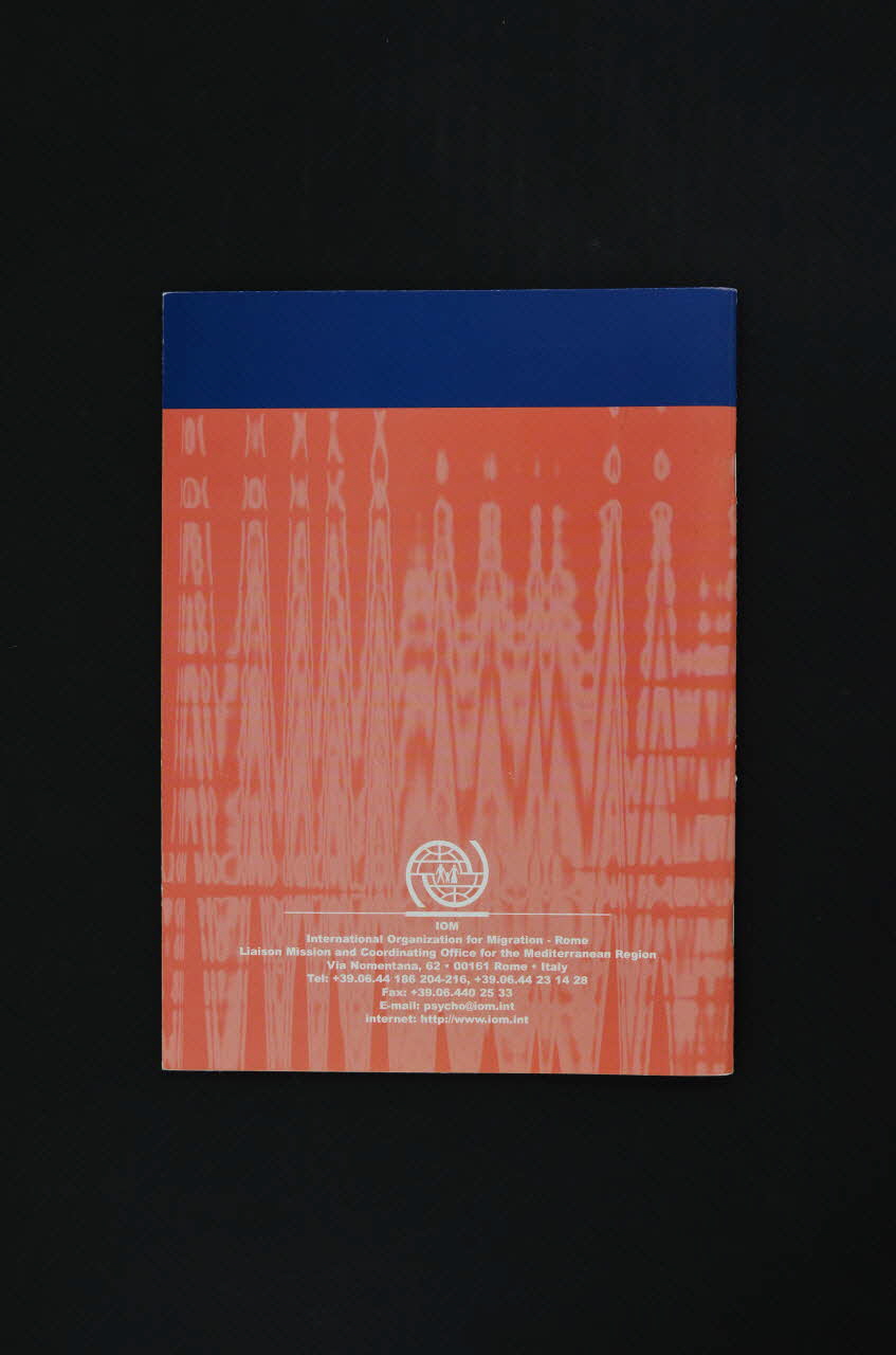 - IOM - OIM // International Organization for Migration // Organizzazione Internazionale per le Migrazioni // - COOPERAZIONE // ITALIANA (deux logos blancs dans le bandeau bleu en haut de la couverture), sur la couvertureTitre
