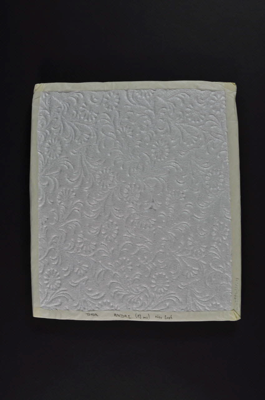 Polystyrène / Tableau réalisé sur une plaque rectangulaire de polystyrène, type dalle de plafond, à motifs floraux sur le revers.