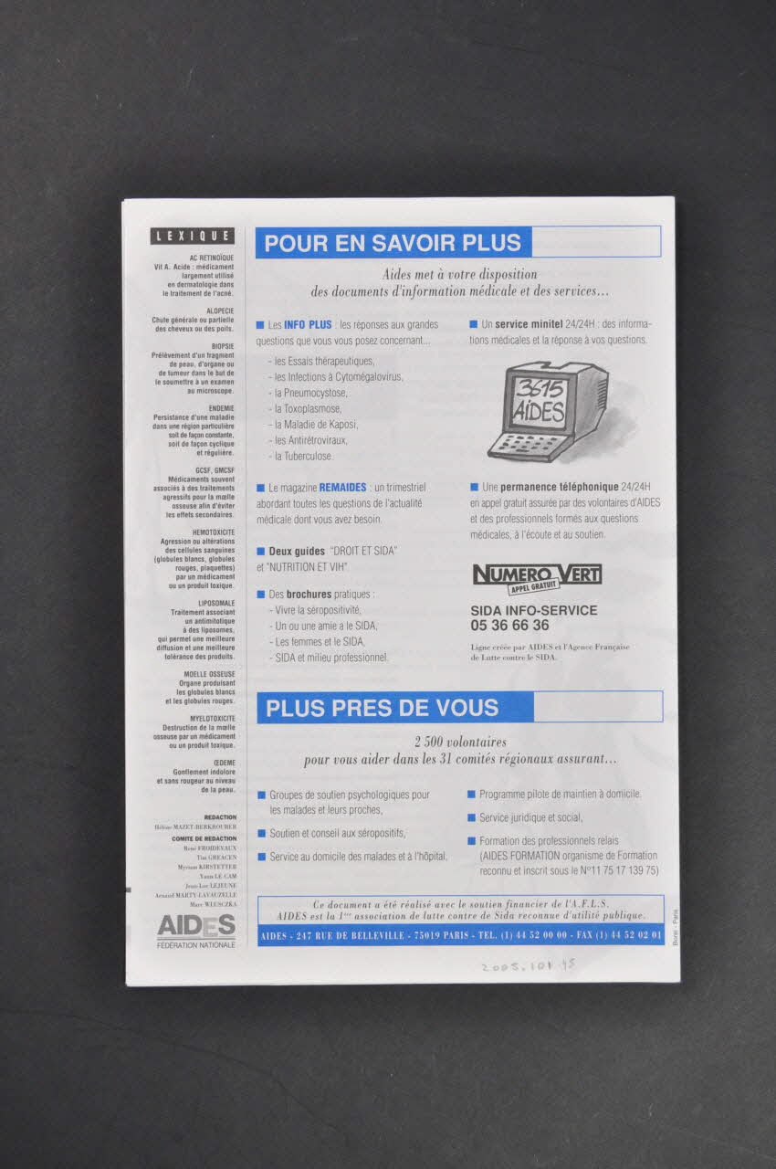 AIDES - 247 RUE DE BELLEVILLE - 75019 PARIS (en bas sur bandeau bleu), versoDécor