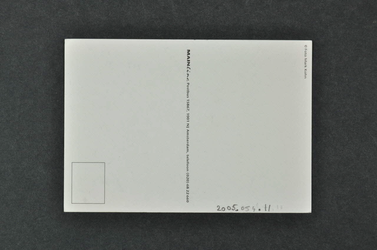MAIN line, Postbus 15867, 1001 NJ Amsterdam, telefoon (020) 68 22 660 (inscription en noir sur fond blanc à la verticale au milieu), versoDécor