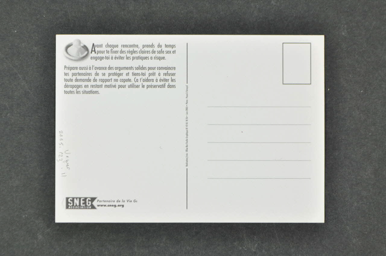 carte postale, "Avant chaque rencontre, prends du temps pour te fixer des règles claires de safe sex..."