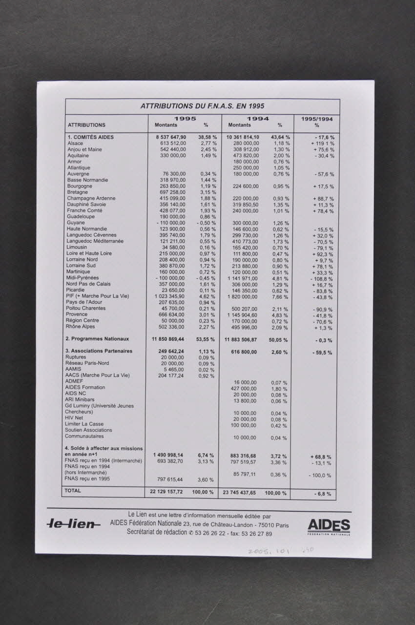 Bulletin, "Le lien", juin 1996, n° 8 supplément / Le Fonds National d'Action et de Solidarité (FNAS)