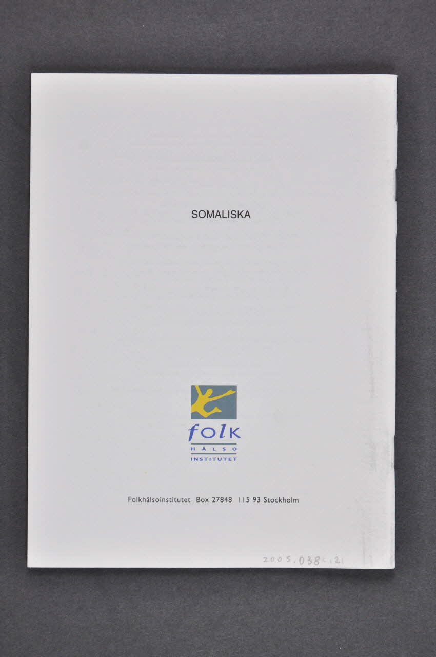 Cette brochure fait partie d'une série multilingue en français (2005.038.17), turc (2005.038.18), arabe (2005.038.19), espagnol (2005.038.20), somalien (2005.038.21)croate (2005.038.22), suédois (2005.038.23), finlandais (2005.038.24), anglais (2005.038.25), albanais (2005.038.26), iranien (2005.038.27)