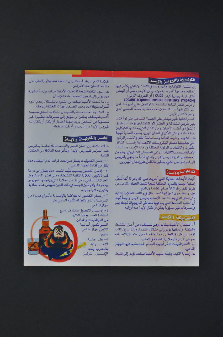 Ce dépliant en arabe est imprimé sur un feuillet de papier glacé plié en deux.