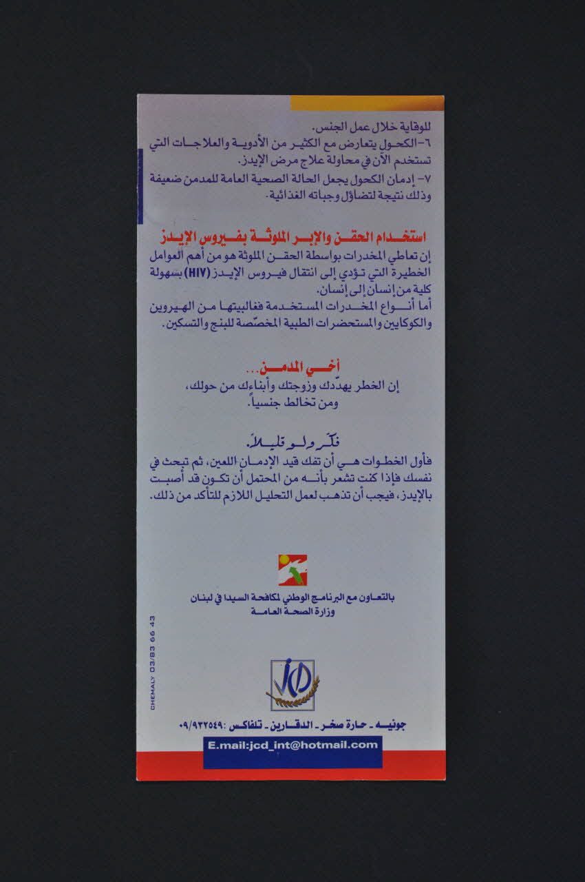 Dos : En bas, logos de Programme National de Lutte contre le Sida au Liban et JCD (adresse mail)