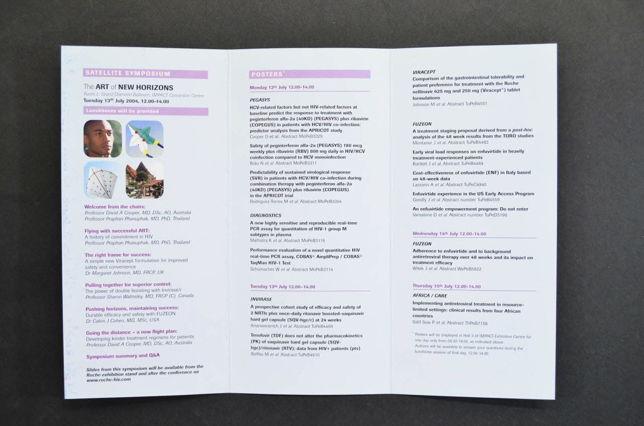 XV International AIDS Conference // IMPACT Convention Center // Bangkok, Thailand // July 11th - 16th 2004 (inscription en noir dans le bandeau violet en haut), sur la couvertureDécor